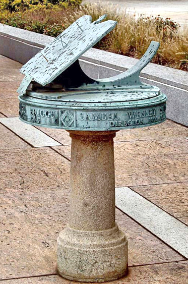 The inner courtyard of the National Institute of Standards and Technology in Gaithersburg, Maryland, is home to one of the most famous polar sundials in the world, the Briggs Commemorative Dial. Installed in 1948, it also converts solar time to standard time and was one of my inspirations to create the Woodland Dial.