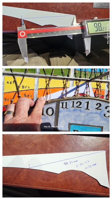 Since the gnomon is .25 inch in diameter, 3 mm is added to the measurement to reach the shadow cast from dead center: