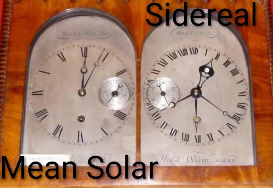 One 360° revolution of the earth around its axis takes ≈ 23 hr 56 min 4 sec. Because the earth is also revolving around the sun it takes another ≈ 3 min 56 sec for a point on the earth to return to facing the sun directly again. A star will therefore appear at the same position in the sky ≈ 4 minutes earlier each day. To catalog the time a star transits, if one uses solar time, you would have to subtract a multiple of this interval depending on what day and solar time it currently is. It is much simpler to use a clock that just measures the stars’ apparent revolution ; after 24 solar hours, the star clock would gain ≈ 4 minutes compared to solar time, and so forth. This is called sidereal time, or star time. The solar day clock and sidereal clock agree once a year, on the September Equinox. On the March Equinox, they have their greatest difference = 12 hours. There are ≈ 366.24 sidereal days in a year and ≈ 365.24 solar days in a year. Right ascension times of celestial objects are given in sidereal time. The Airy transit telescope clock was set to sidereal time, to simplify recording star transit times. When the March Equinox occurs, which is the First Point of Aries, a sidereal clock reads 0 h 0 m 0 s, if the moment of the Equinox is directly over the clock’s local meridian. There are some stars that transit the Prime Meridian close to this Zero hour. We know, because of precession of the equinoxes, that the First Point of Aries is now in Pisces. The star ωPiscium is now very close to this RA 0 position. If you were sitting at the Airy Telescope and your sidereal clock showed 0h 0m 0s, you could look in the telescope , assuming it is night, and see Piscium very close to transiting the Prime Meridian . Because of Precession, though, it will eventually drift off to the east, moving at a rate of 50 arcseconds ( 0.0139° ) a year. It reached RA of 00 hr 00 min 00 sec in 2013. As of 2026, it has a RA of 23 h 59 m 19 s (23.99 hours).