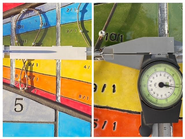 The next day, 3/21/26, at solar noon, there is no shadow at all on the north or south side. By now, over 29 hours after the Equinox, there definitely should be a shadow on the south side. This confirms that raising the dial 1.7 mm was too much! I will watch the dial for a while and start looking for 0.9 mm flat bar. I probably will need to swap out the 1.7 mm shim for a thinner one. Sundialing is a game of millimeters.